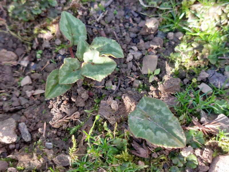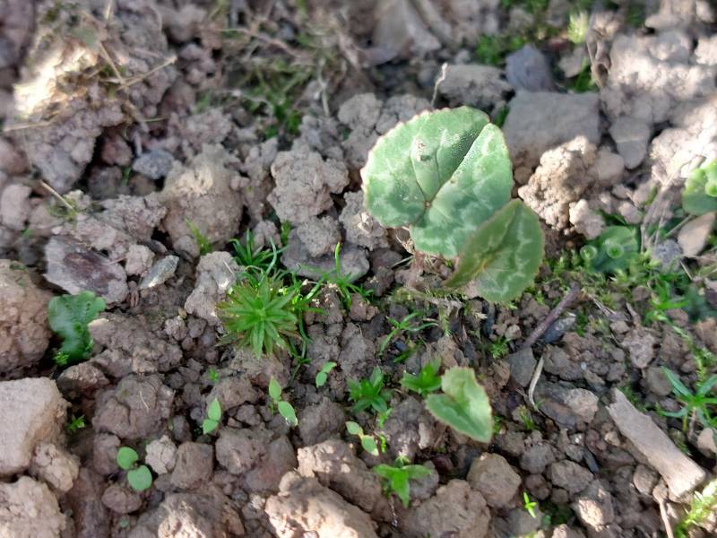 Cyclamen hederifolium 'Special Leaf Alba' muszę szybko ewakuować z zajmowanego stanowiska, bo z rodkiem raczej nie wygra...