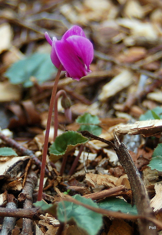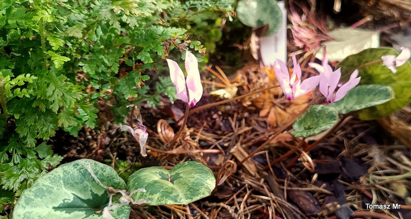 Pojawiły się natomiast liście i pierwszy kwiat cyklamenu cypryjskiego, ale i jego mus przesadzić, bo tego z kolei tłamsi konkretnie języcznik 'Cristatum'... stąd i sensownych zdjęć brak