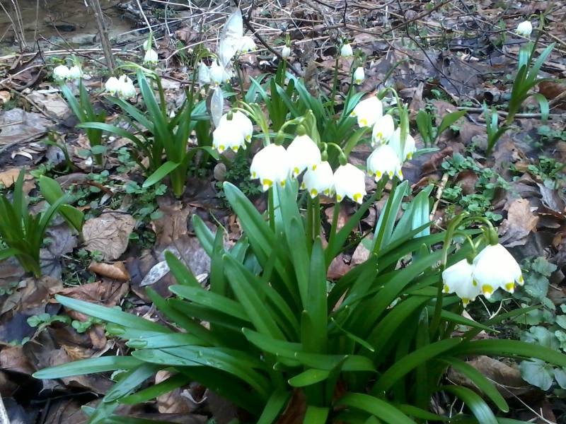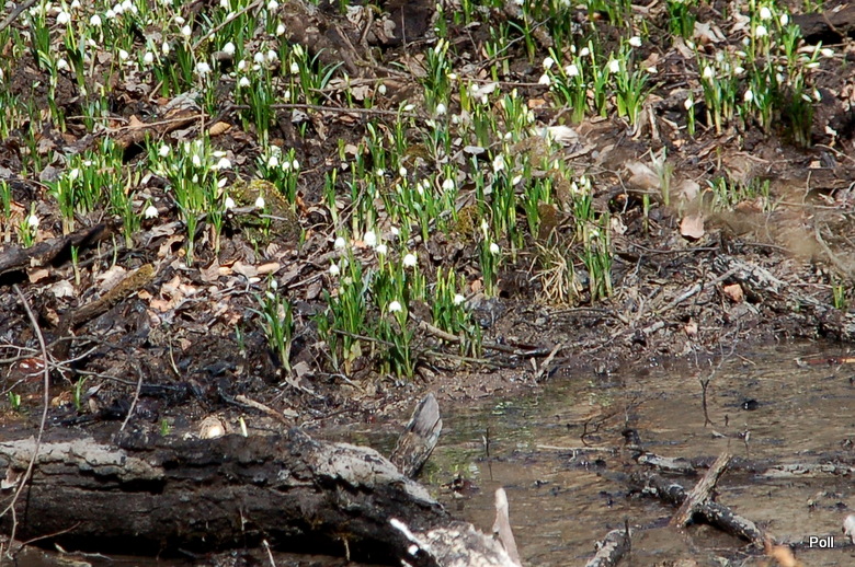 Polu stanowisko naturalne , i jeszcze przy rzece , na zakolu której nie stopniał jeszcze lód . W mojej najbliższej okolicy są dwa miejsca z dużą ilością śnieżycy , pierwsze już dawno przekwitło , bo stok południowy , a to właśnie jest dużo zimniejsze i mało słoneczne , bo zasłania duża góra i jest to może 400 metrów od zapory w Solinie . W moim lasku do którego przyniosłam wiele lat temu kilka kępek też już kwiatów nie ma .