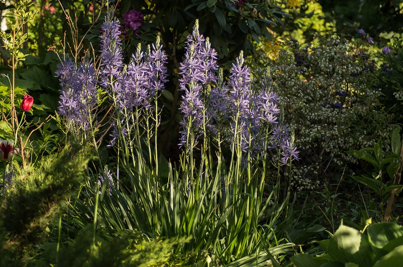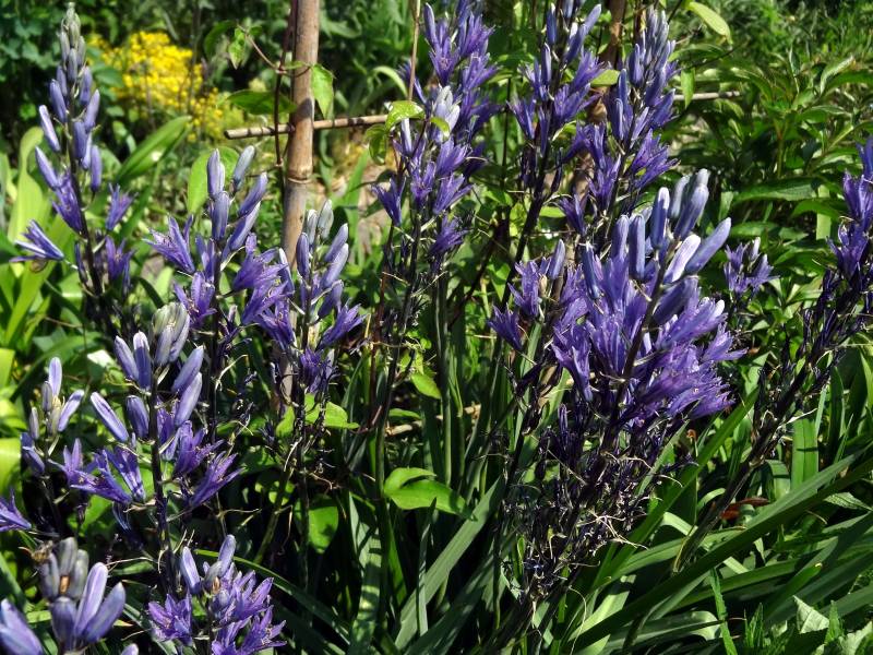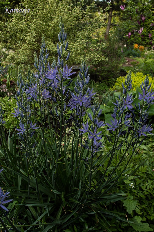 • kamasja jadalna (Camassia quamash), najniższy gatunek (30-60 cm) o kwiatach w różnych odcieniach koloru niebieskiego.