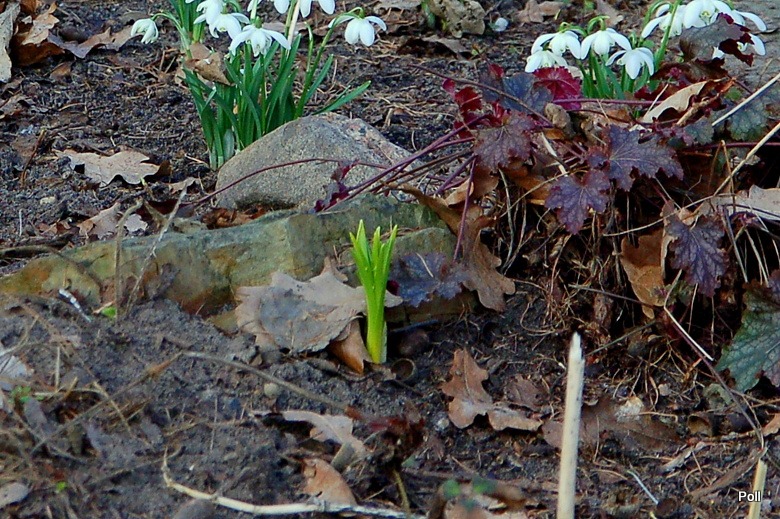 Choć temperatury są takie sobie, kamasje pokazały zielone szczypiory. Porównując z poprzednim rokiem, są nieco mniej zaawansowane we wzroście, co mnie bardzo cieszy. Opóxnienie oceniam na jakieś 1,5 tygodnia hu_rra Białe, w chłodniejszym i bardziej 'mrożonym' miejscu, jeszcze się nie pokazały.