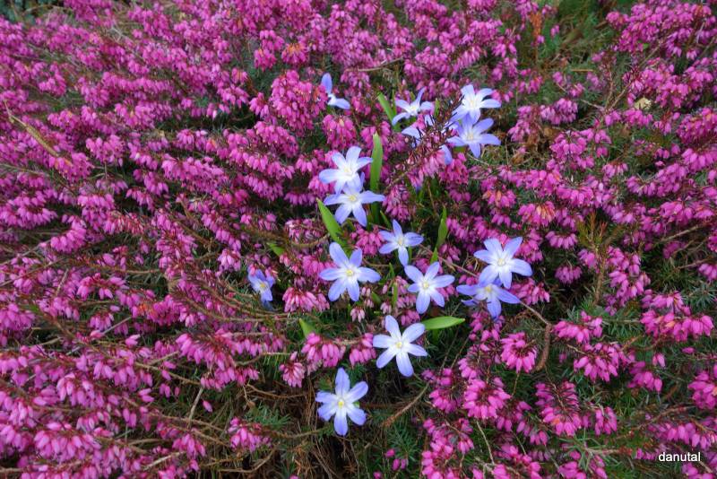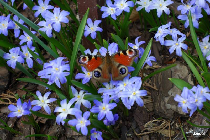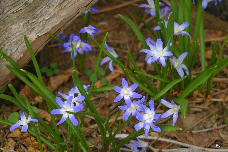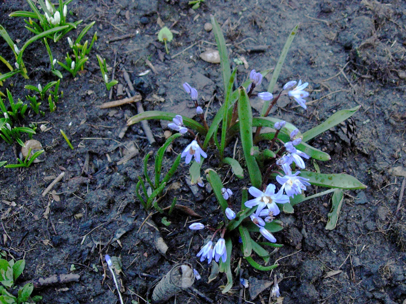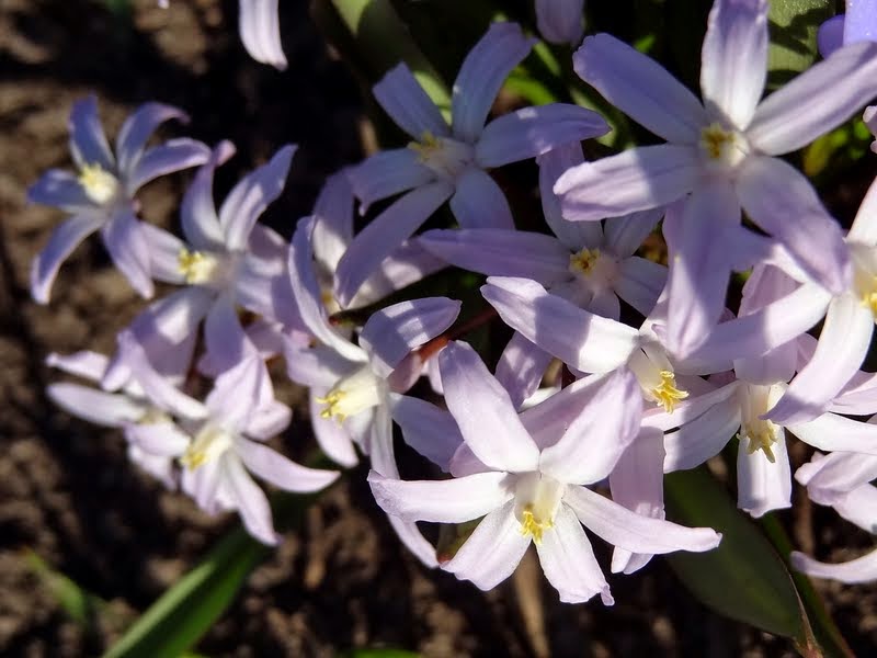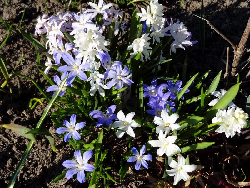 Śnieżnik lśniący (Chionodoxa luciliae) - największe ich skupisko mam na słonecznym stanowisku, w gliniastej ziemi, ale w dość suchym miejscu, bo pod okapem domu. Dobrze rosną także na mojej piaszczystej ziemi w Jedrzejówce.