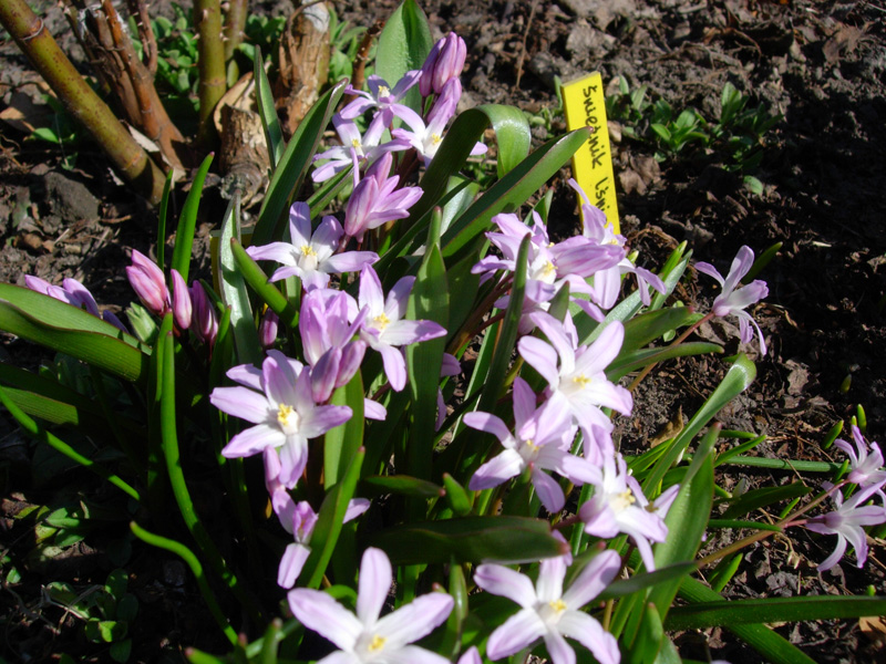 Rosnący w największym cieniu Śnieżnik lśniący (Chionodoxa luciliae) dopiero zaczyna.