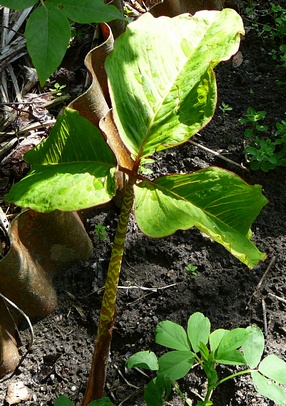 U mnie rośnie w donicy na stałe zadołowanej w ziemi, dobrze obsypanej korą. Nie tyle szkodzą jej mroźne zimy (spędziła w donicy 6 lat), co wiosenne przymrozki, przed którymi trzeba by ją chronić. Dla mnie, najciekawsza z arizem, które można uprawiać w naszym klimacie.