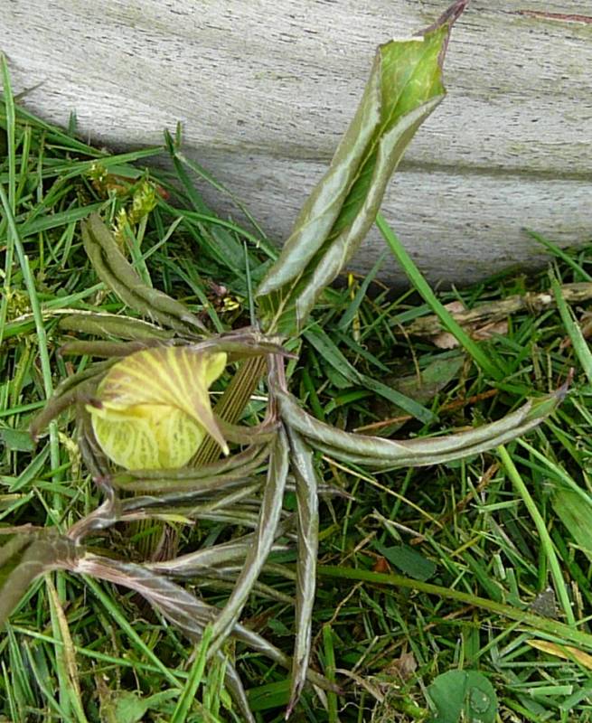 Kwiaty: dzbankowate, żeńskie lub męskie – brązowo-białe paskowanie na górnej, wewnętrznej części „klapki”.