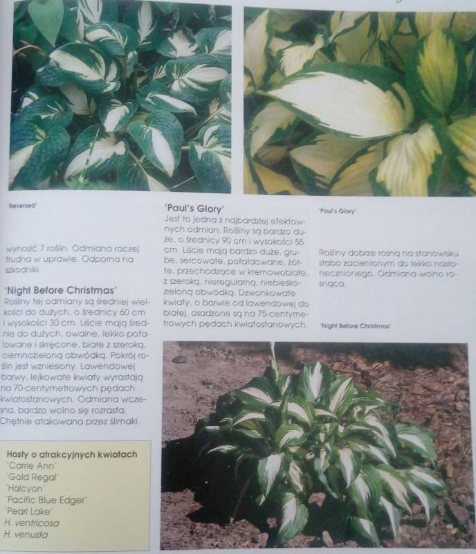 Później, mamy to, co najbardziej lubimy - fotki i opisy ponad 7 tysięcy gatunków i odmian naszych ukochanych roślin. Co wazne, autor przedstawiając serie, czy poszczególne hosty, dodaje słowko o twórcach i ich zdjęcia. W ten sposób pozanjemy małżeństwo Skaggsów (Empress Wu), Lydellów (Arch Duke, Lunar Orbit), czy Olge Petryszyn (Niagara Falls, Hoosier Dome, Key West)