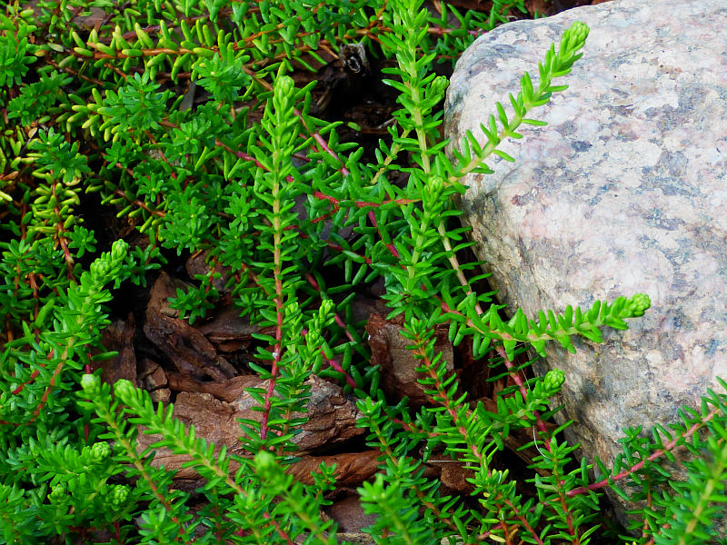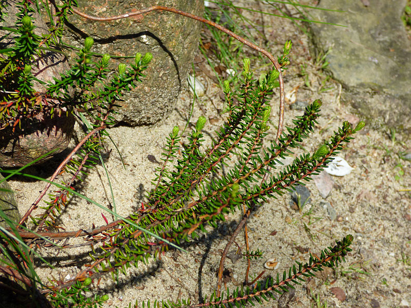 Pędy: młode wznoszące się, czerwonawe, nagie lub rzadko gruczołowato owłosione... starsze pokładające się, o łuszczącej się korze, czerwonobrunatne