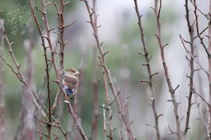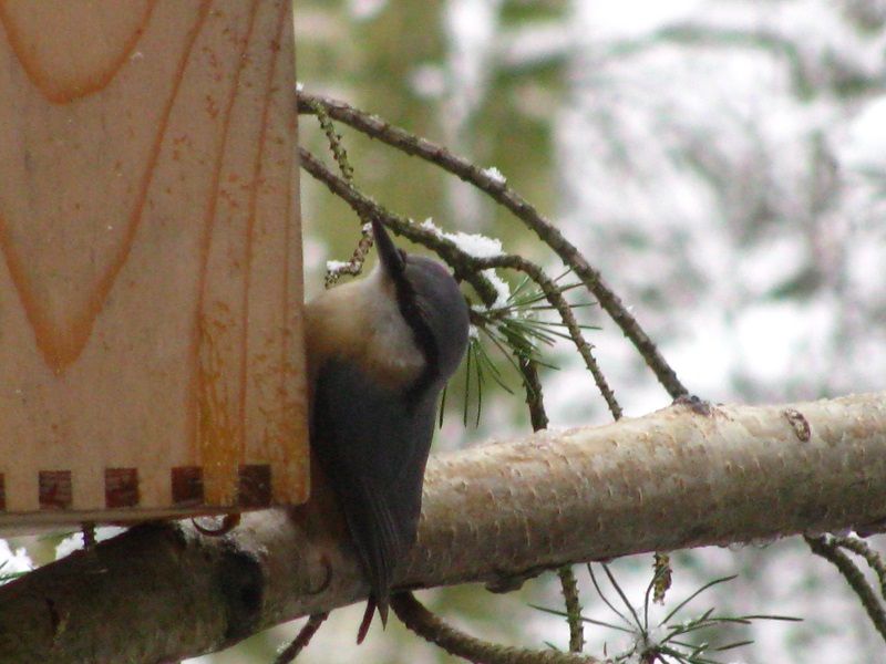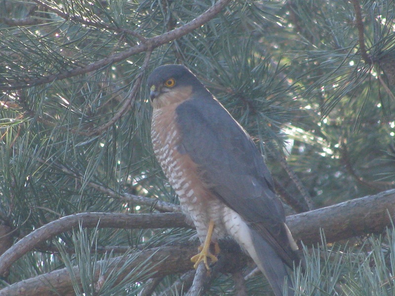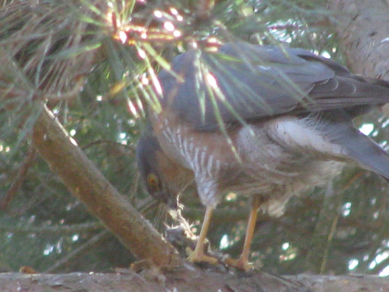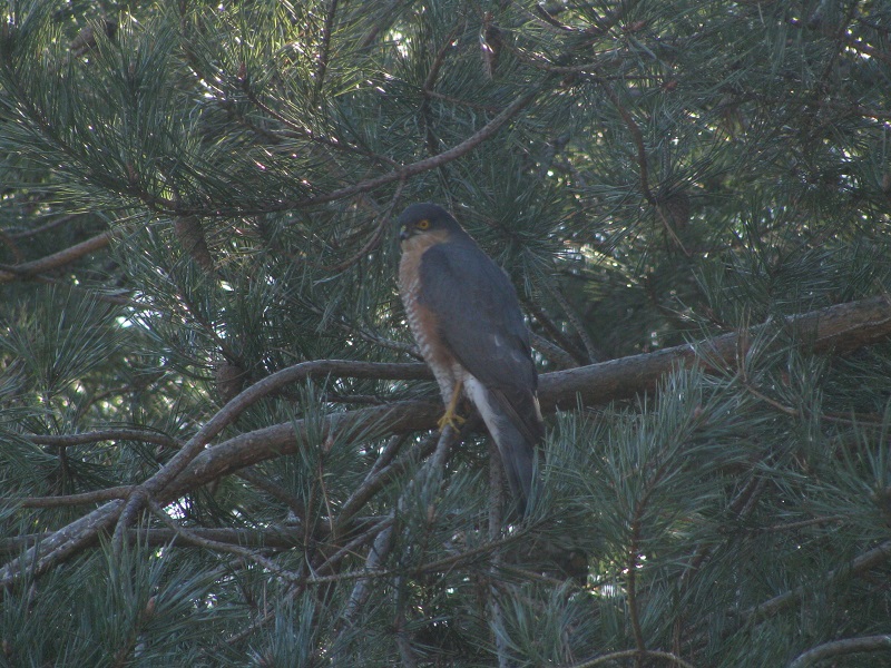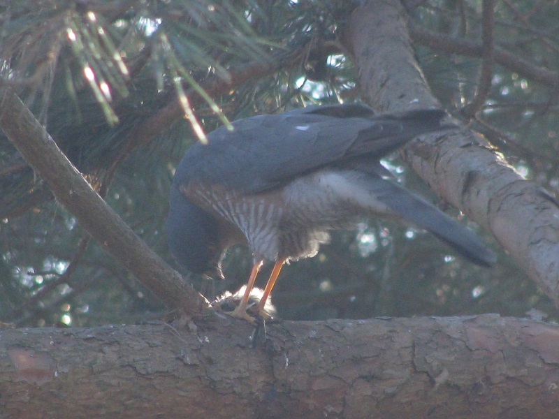 W tygodniu pracy nie mogłam tego zaobserwować , ale w sobotę usłyszałam krzyk sikorek , wyszłam przed dom i spłoszyłam krogulca siedzącego wśród sosen.