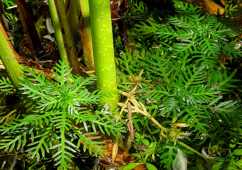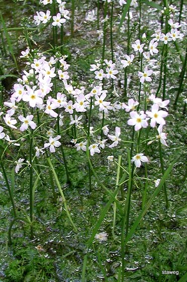 Roślina wodna z rodziny Pierwiosnkowatych (Primulaceae), o liściach podzielonych na równowąskie łatki.