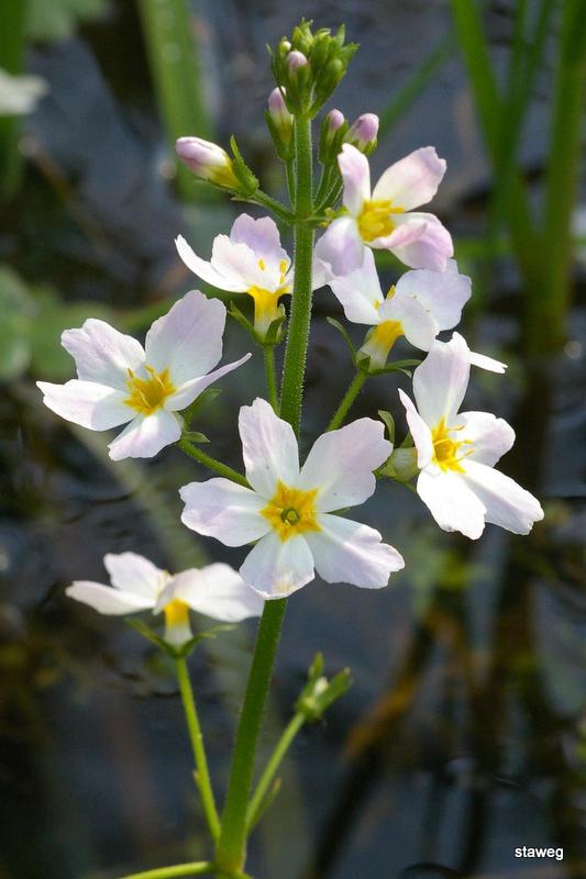 Rośnie na głębokości od 20 cm do 1 m . Kwiaty wyrastają nad wodą i są stosunkowo okazałe.