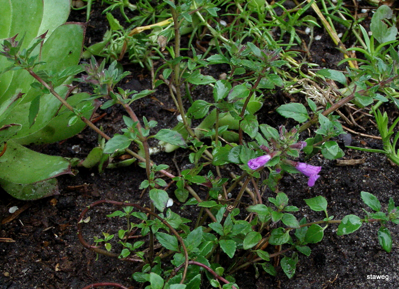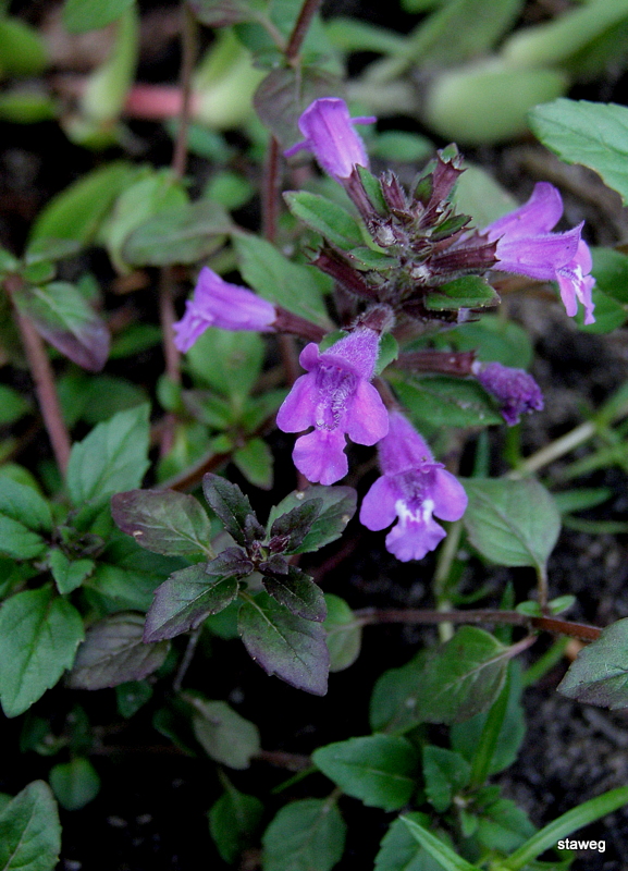 Jasnotowatych (Lamiaceae), czasem jednorocznej, ale najczęściej trzyletniej. Łodygi ma leżące, podnoszące się, pokryte drobnymi, podługowatymi, drobno ząbkowanymi liśćmi.