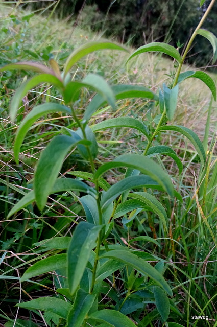 Liście.nagie, lancetowate, mają ostro zakończone blaszki o gładkich lub drobno ząbkowanych krawędziach. Górne liście swoją nasadą obejmują łodygę.
