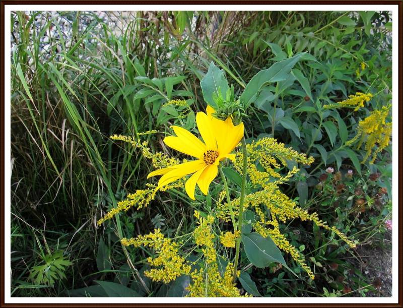 A u mnie w terenie właśnie teraz kwitnie...no właśnie - co? Słonecznik? Może bulwiasty, albo jakaś hybryda? Dziwne, bo dopiero zaczyna kwitnienie (sporo pąków na łodydze). Roślina wysoka na jakieś 2 metry i zaczyna być jej wszędzie dużo :). Ale urokliwa jest...