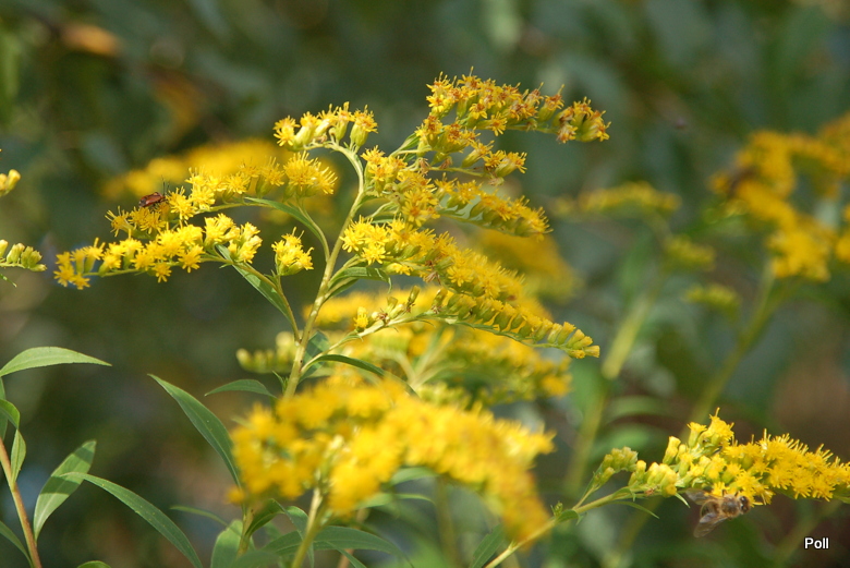 Najpospolitsza i dość niebezpieczna, zaliczana do najbardziej ekspansywnych gatunków obcych, przywleczonych do nas i łatwo się rozprzestrzeniających. Gdy się jej nie dopilnuje - nawłoć kanadyjska (Solidago canadensis), szybko rozprzestrzeni się nie tylko po naszym ogrodzie, ale i sąsiadów. Okoliczne nieuzytki aż się od niej roją, więc normalną koleją rzeczy trafi tez do mnie. Po przekwitnięciu usuwam kwiatostany a póki kwitnie, jest tłumnie oblegana przez owady.
