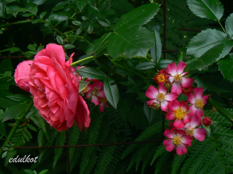Hodowca: Szilveszter Györy, 2004 Typ: krzew, mini pnąca Kwiaty: karminowoczerwone z białym środkiem, malutkie, pojedyncze, kwitnie sporymi bukiecikami Zapach: łagodny Wielkość: wys. do 2 m, szer. 0,6 m, jako okrywowa do 2 m Mrozoodporność: 5b