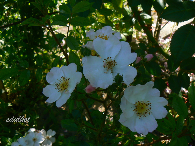 Hodowca: Łukasz Rojewski Typ: parkowa Kwiaty: biało-różowe, pojedyncze, 1,5 cm, kwitnie wiechami cały sezon Zapach intensywny Wielkość: wys. 1,8 m, szer. 1,2 m, Mrozoodporność: wysoka, odporność na choroby wysoka