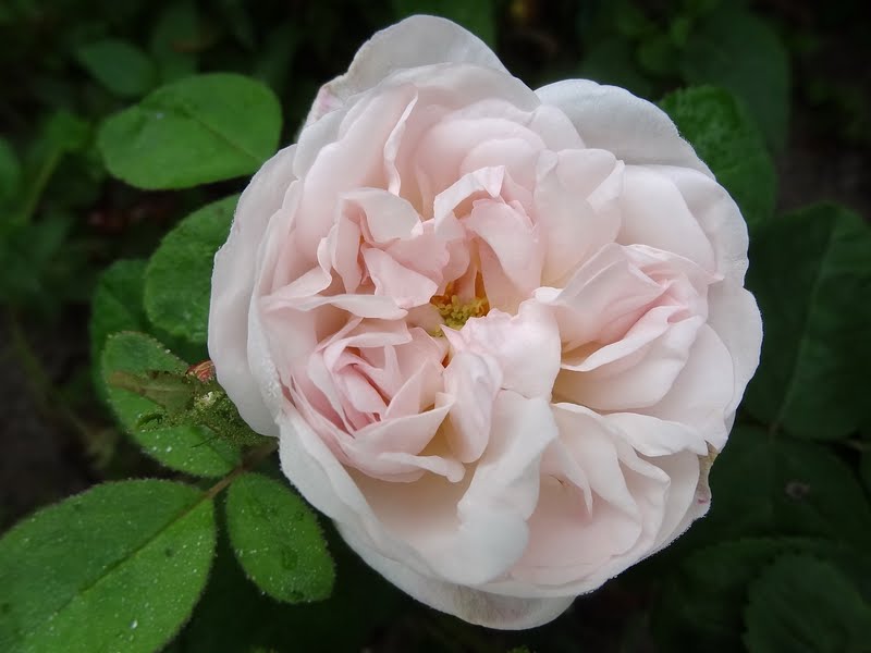 Kwiaty półpełne do pełnych w kolorze pudrowego różu blednące w miarę rozkwitania. Widoczne ciemne pręciki. Zapach umiarkowany. Powtarza kwitnienie.
