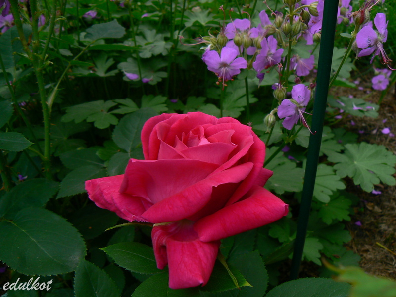 Odcień kwiatów zależy od oświetlenia i etapu rozkwitu, w słońcu wyraźnie wpada w róż, a w cieniu i jak kwiatek przekwita wyraźnie przebija fiolet.