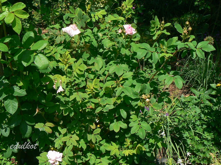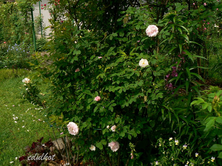 Kwiaty: jasno-różowe jaśniejące do białego w miarę rozkwitania, średnie ok. 5-6 cm, półpełne (26-40 płatków), kwitnie cały sezon aż do mrozów, w czasie deszczowej pogody pąki mumifikują się i trzeba obrywać te mumie,