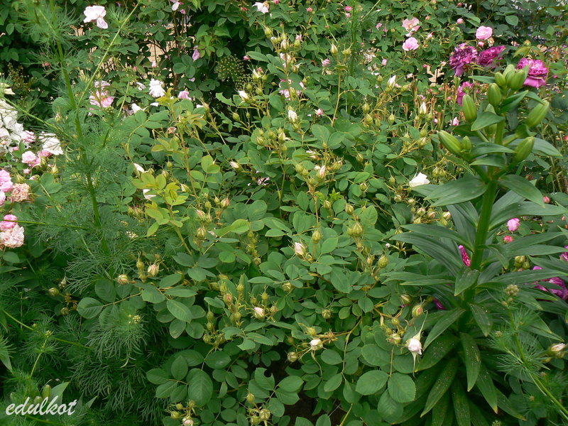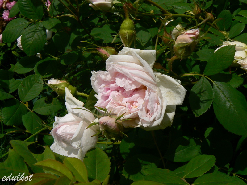 Róża Alba, Centifolia, Turbinata, Pochodzenie: Jean-Pierre Vibert 1819 (Francja) Kwiaty: jasno-różowe, z eleganckich pąków rozwijają się niezbyt eleganckie małe i średnie ok. 5cm, pełne (26-40 płatków), kwitnie raz, Zapach: silny, Wysokość 1,5 m Mrozoodporność: strefa 3b