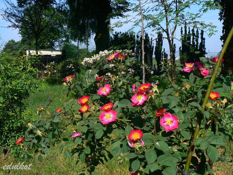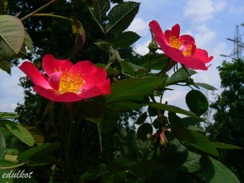 Róża o cechach klimbera, mieszaniec róż foetida bicolor i canina.