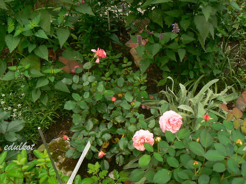 Nowa róża perska a już od początku miała wigor. Co prawda przy ciągłych deszczach w lecie stała goła, ale dość szybko się zregenerowała i zawiązała nowe pączki. Pędy wyginają się pod ciężarem kwiatów co przy jej jak na razie nikłym wzroście nie wyglądało zbyt dobrze.