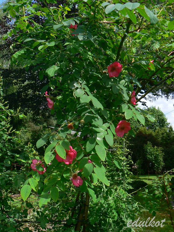 Otrzymałam ją w prezencie i z wahaniem zaprosiłam ją do ogrodu bo jednak róże chińskie raczej są mało odporne na nasze dziwaczne zimo-wiosny. Do tej pory jakoś sobie radzi choć jeszcze nie było woow . Owoce zawiązuje ale większość zrzuca przed dojrzeniem.