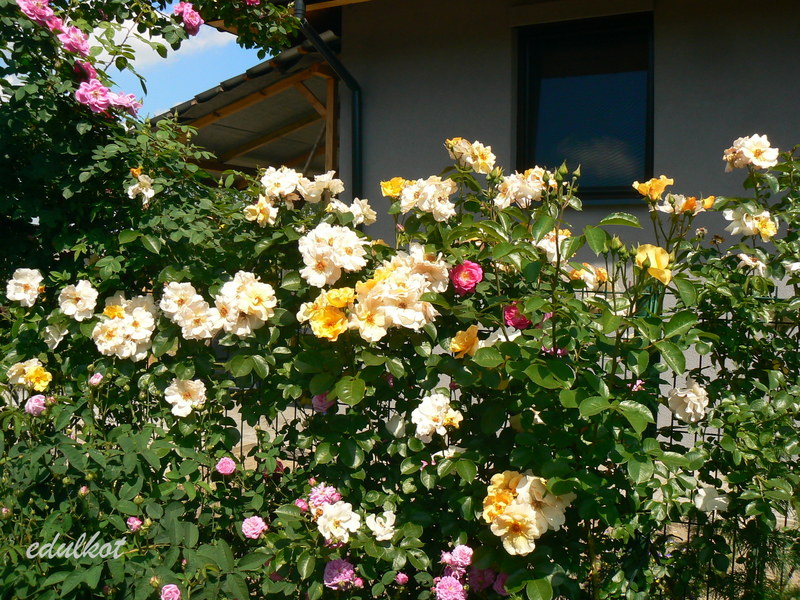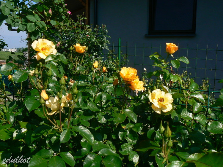 Powolutku się rozkrzewia, kwiatki ma śliczne z żółtymi pręcikami przechodzącymi w czerwony kolor. Wygląda na to, że jest odporna na choroby grzybowe bo do końca sezonu miała ładne liście, choć wyczytałam, że na czarną plamistość podatna. Słaba wytrzymałość na zmienne temperatury zimą i na przedwiośniu, w 2017 cięta do ziemi, ale do końca sezonu urosła do przeszło 2 m.