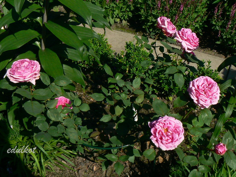 Kwiaty: duże, półpełne, miseczkowate, różowo-czerwone do szkarłatu, powtarza kwitnienie;