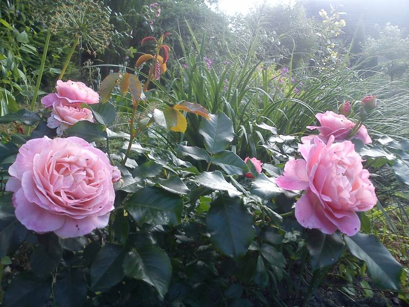 Pierwsze kwiaty Louis Riel, niestety, tylko jedno zdjęcie się w ogóle nadaje do pokazania. W każdym razie, zadowolona jestem ogromnie- widać, ze ta róża lubi kwitnąć, kwiaty też są zdumiewająco duże jak na mieszańca rubrifolii. Trochę niepokoi mnie pokrój ale, mam nadzieję, do wypracowania jest.