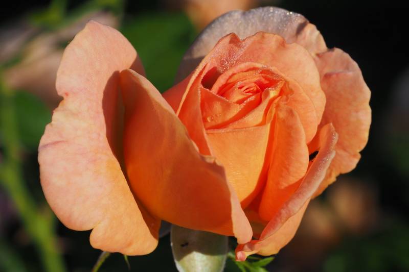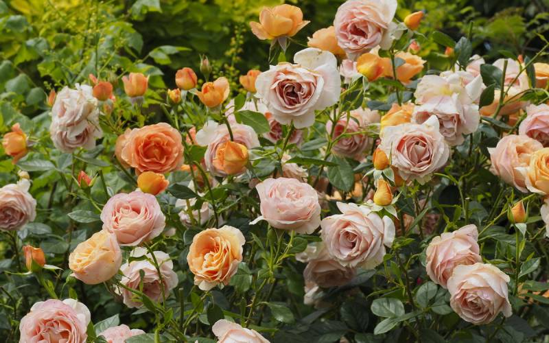 Kwiaty: miedziano-brzoskwiniowe, wpadające w pomarańczowy, a nawet różowy; mocno wypełnione ( Ø: 8 cm ),
