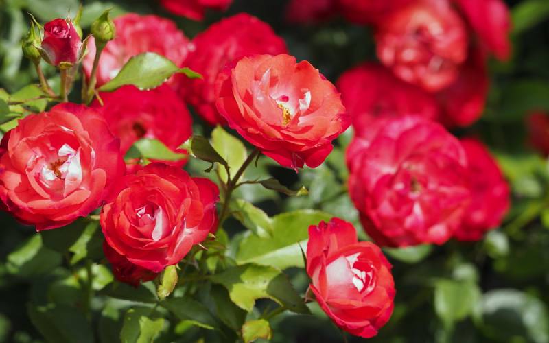 Kwiaty: jaskrawo czerwone na zewnątrz srebrzystobiałe, kwiaty wydają się "świecić" z daleka ( Ø: 5 cm ); kwitnie długo i obficie, przez całe lato do listopada