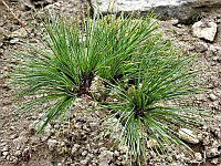 Liście: Igły długości 4–10 cm, szerokości 0,7–1 mm, zebrane w po 5 na krótkopędach. Proste, lekko skręcone, brzegiem ząbkowane, niebiesko-zielone.