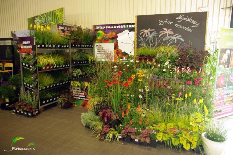W hali wystawowej znajome stoiska szkółkarzy: Szmit (jak zwykle najbardziej efektowne stoisko), Grąbczewscy, Ulińscy, Szymanowski, Acrocona, Zielone Progi, Pudełko, Ciepłucha i inni.