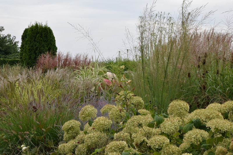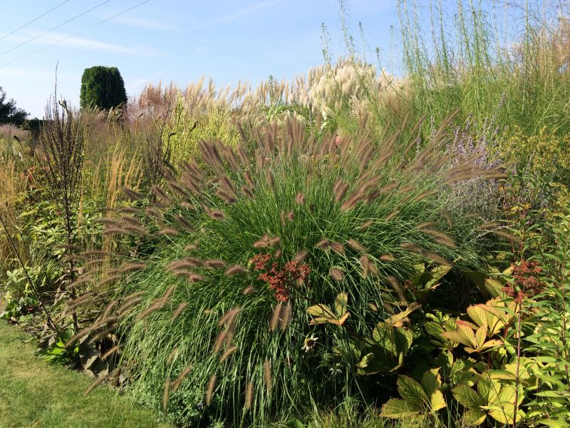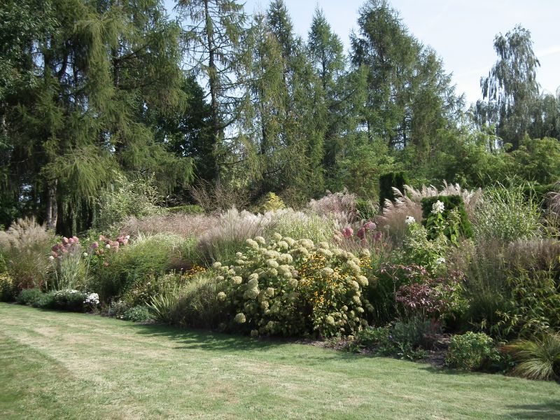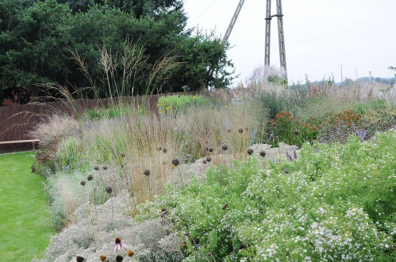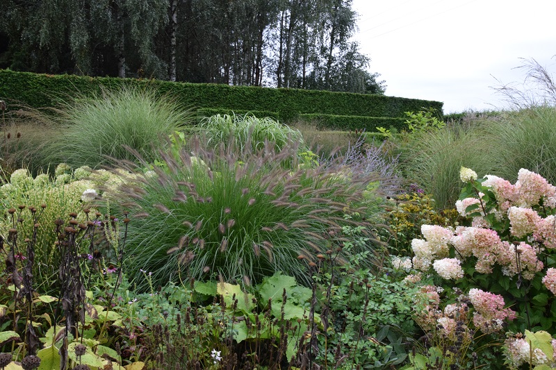 Tu, na pierwszy planie, w zeszłym roku rosły inne, wieloletnie kępy rozplenic. Jednak właściciele chyba stwierdzili, że odmiana o czarnych kłosach lepiej się tu sprawdzi. Zobaczymy za rok ;). Użyta odmiana to Black Alvernee (nabyłam sobie :lol: )