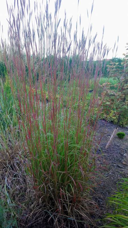 Panicum virgatum 'Dewey Blue' mimo deszczowej pogody był bardzo niebieski