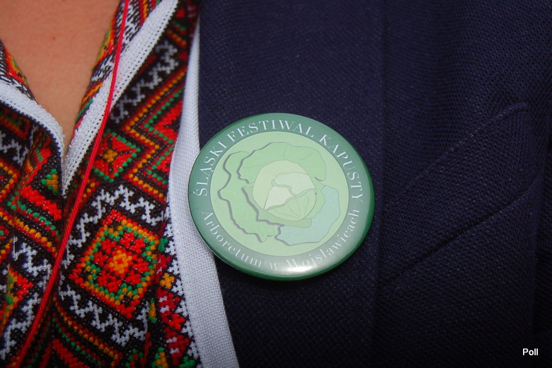 Button - odznaka VI Śląskiego Festiwalu Kapusty na piersi Tomasza Dymnego ( zwróćcie uwagę na piękny haft koszuli :mniam )