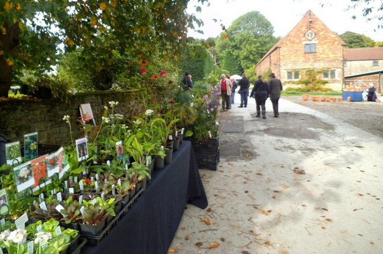 Stoiska kiermaszowe ustawiono wzdłuż dróg, między innymi tuż koło zabudowań gospodarczych , oraz murów okalających część ogrodową posiadłości. Część stoisk rozłożono na trawnikach. Impreza była kameralna, skupiała bowiem nie więcej, niż 40 wystawców, ale za to były to nursery z najwyższej półki, które widziałam również na Flower Show. Wybór roślin był dość szeroki a i ceny nieco niższe, niż na Flower Show.