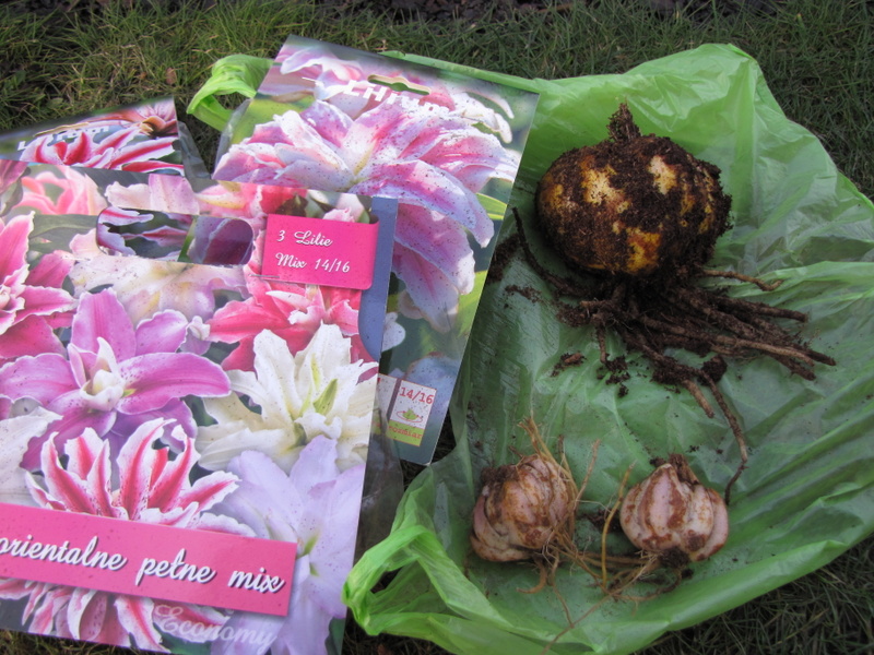 Ceny lilii od 3-6 zł, cebule naprawdę duże i duży wybór, dla porównania wielkość lili które kupiłam w markecie