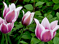 Wysokość: 50-60 cm Kolor kwiatów: płatki ciemno wrzosowe z białymi marginesami Termin kwitnienia: kwitnie w kwietniu i na początku maja Zapach: delikatny Wymagania: gleba przepuszczalna, o lekko zasadowym odczynie Mrozoodporność: dobra, można sadzić na terenie całego kraju
