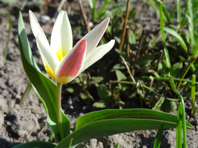 Tulipan 'Johann Strauss' (razem z czerwonokwiatową odmianą 'Shakespeare') zaczął rozwijanie kwiatów bardzo wcześnie, bo już 19 marca. To chyba jednak pierwsze i ostatnie zdjęcia, bo po przedwczorajszym nocnym mrozie położyły się na ziemi i tak do dziś leżą.