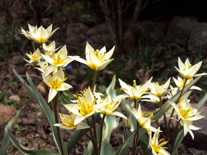 Tulipan turkiestański - Tulipa turkestanica pochodzi z środkowej Azji, z obszarów Turkiestanu i Kirgistanu. Roślina z niego niewielka, dorasta ledwie do 25 cm wysokości. Kwiatów na pędzie może być za to aż 12, co prawda niezbyt wielkich ale za to jak uroczych. Cebulki tego tulipka sadzimy stosunkowo płytko, najwyżej 10 cm w głębi gleby.