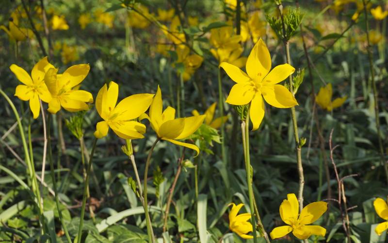 Tulipan dziki dobrze rośnie w trawie, czy w jasnym cieniu pod drzewami i krzewami. Ma cudny zapach!