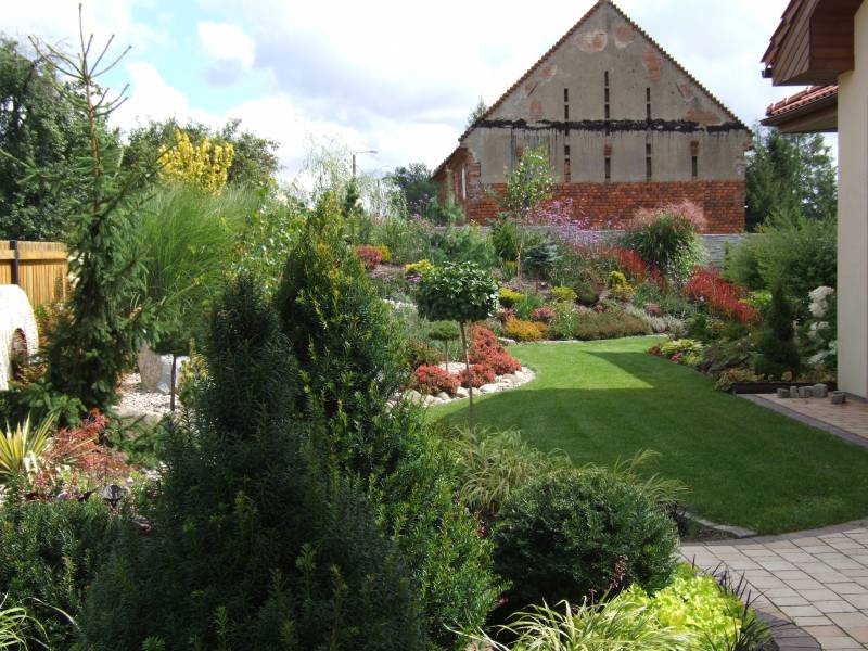 ), lilaki, kaliny, niektóre tawuły. Z iglastych dla urozmaicenia możesz posadzić cisy, choiny kanadyjskie lub mikrobiotę. A pomiędzy nimi na przykład kolorowe trzmieliny