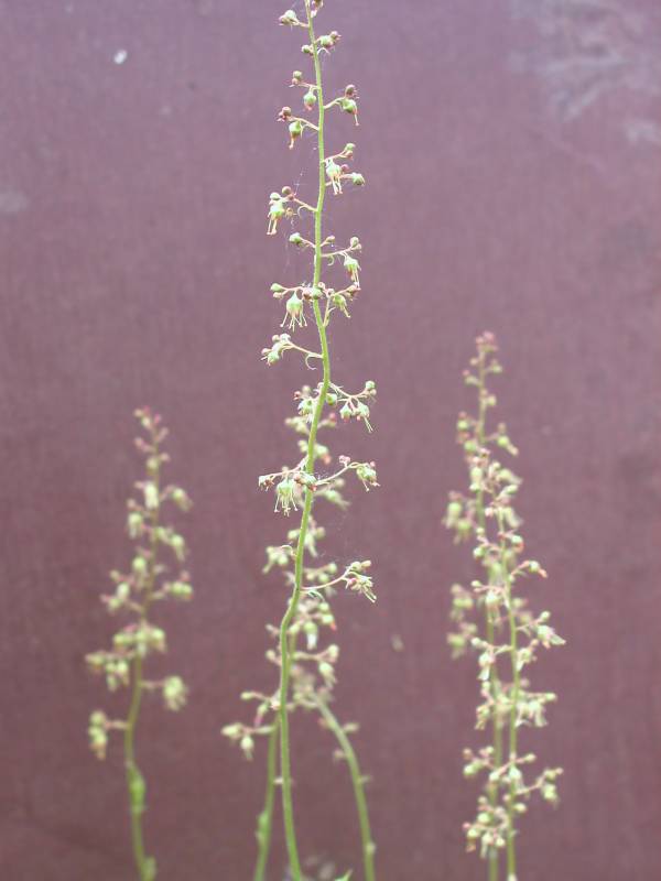 13. Czyżby Beauty Color (?) - jest to tegoroczna sadzonka, tu w cieniu, sadzonka "matka" rosnąca na słońcu ma pędy kwiatowe jasno zielone plus kwiatuszki drobne jasno zielone z wyciągniętymi pylnikami bało-czerwonymi