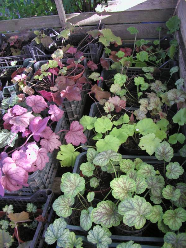 Skrzynki z ukorzeniającymi się żurawkami, tutaj mają dość ciemno. Jest ponad 60 doniczek. Sadzonki robione w trzech terminach: od 3 maja do 1 lipca b.r.