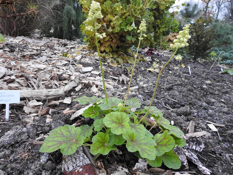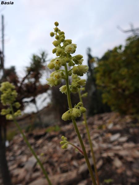 Rodzaj: Żurawka (Heuchera) Odmiana: Blondie in lime Wymiary : odmiana tworząca kępy o szerokości 20 cm i wysokości 15 cm/25 cm z kwiatostanem. Kolorystyka: zielone liście. Kwiaty: zielono-żółte. Kwitnienie: od maja do września. Warunki: stanowisko cieniste/pół-cieniste.