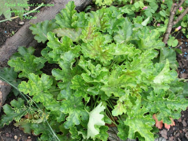 Rodzaj: Żurawka (Heuchera) Odmiana: Zabeliana Wymiary: tworzy kępy o średnicy 45 cm i wysokości 30 cm/90 cm z kwiatostanem. Kolorystyka: liście zielone z purpurowymi plamami. Kwiaty: zielonkawo-różowe. Kwitnienie: od maja do sierpnia. Warunki: stanowisko słoneczne/pół-cieniste.