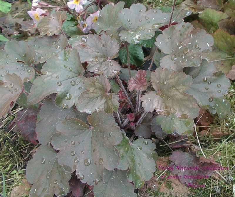 Rodzaj: Żurawka (Heuchera) Odmiana: Tango Wymiary: tworzy kępy o średnicy 30 cm i wysokości 15 cm/30 cm z kwiatostanem. Kolorystyka: brązowo-zielone liście z metalicznymi przebłyskami.Świeże przyrosty fioletowe. Spód liścia purpurowy. Kwiaty: czerwone. Kwitnienie: od maja do lipca. Warunki: stanowisko pół-cieniste/słoneczne.