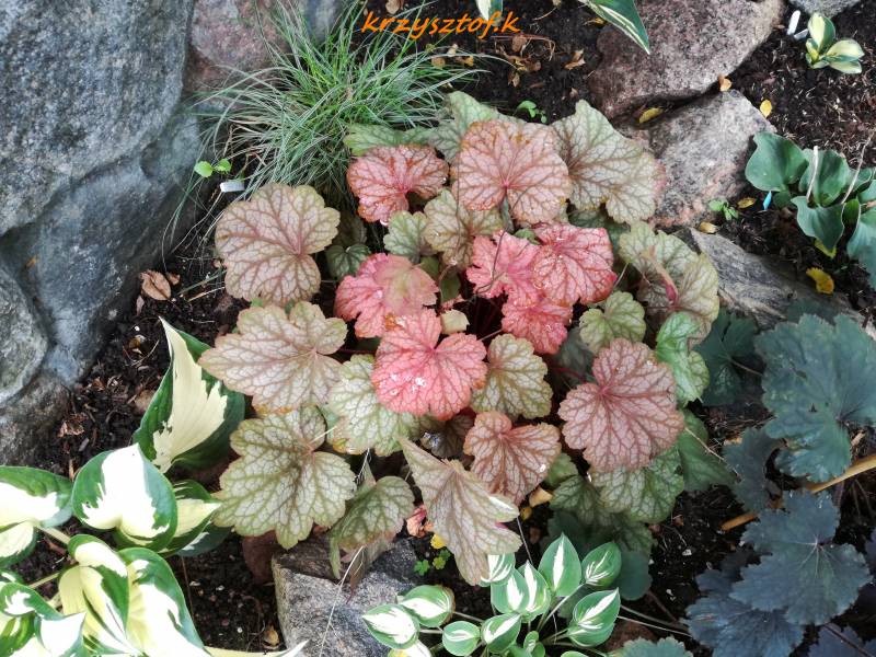 Wymiary : odmiana tworząca kępy o szerokości 35 cm i wysokości 30cm. Kolorystyka: liście w odcieniach czerwieni. Kwiaty: Biały Kwitnienie: od lipca do sierpnia. Warunki uprawy: stanowisko pół-cieniste/słoneczne., stale wilgotne